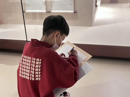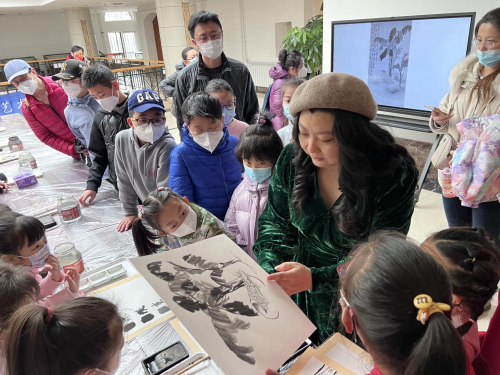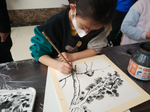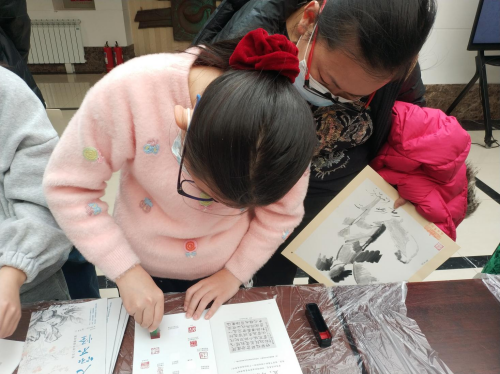 听过老师教授的内容后,同学们纷纷选择自己心仪的作品或题材,发挥才华,临摹、采集着前人作品之美,也创造出独属于自己的艺术作品。在创作过程中,随行的老师们对学生耐心指导,家长们也和孩子交流意见,增进了师生间、亲子间的沟通互动。