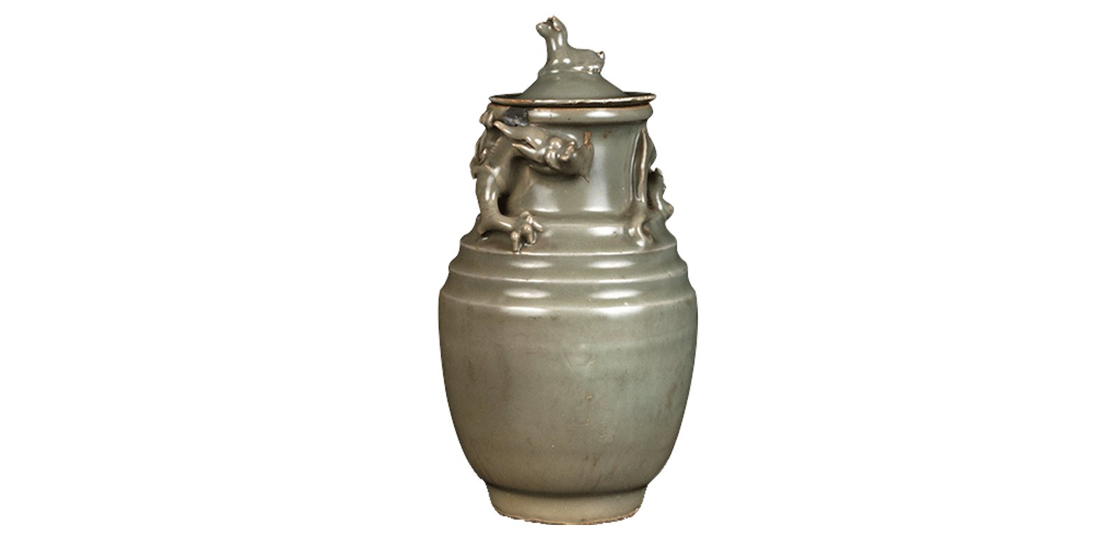 龙泉窑青釉贴塑龙纹瓶