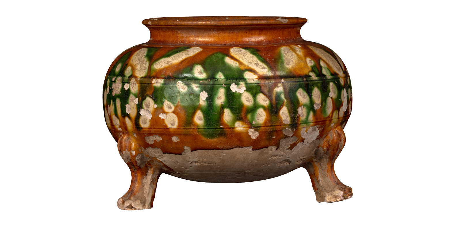 三彩三足罐