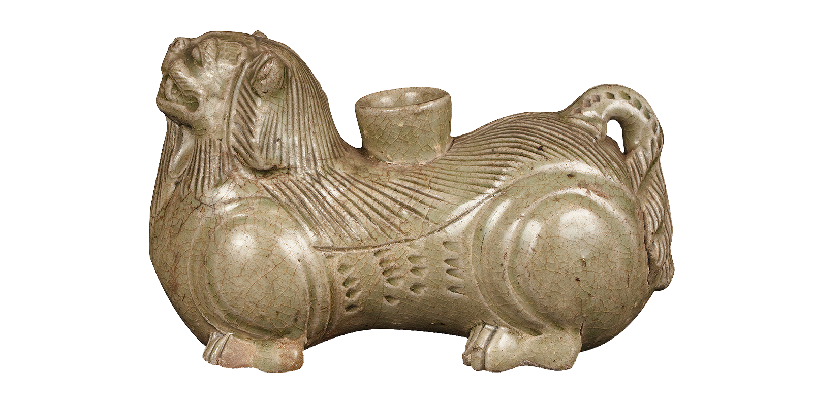 越窑青釉狮形烛台