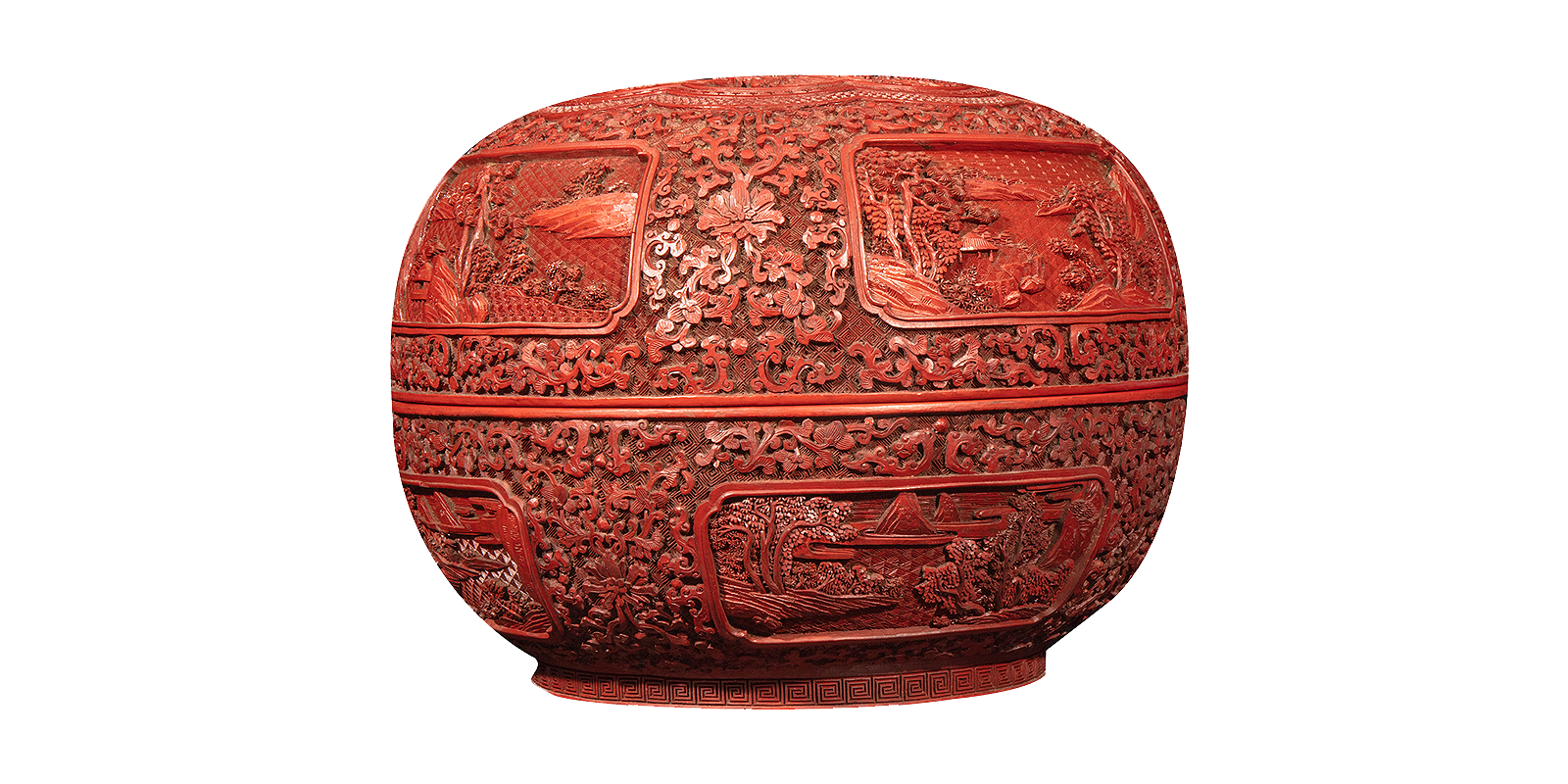 剔红开光山水漆盖盒