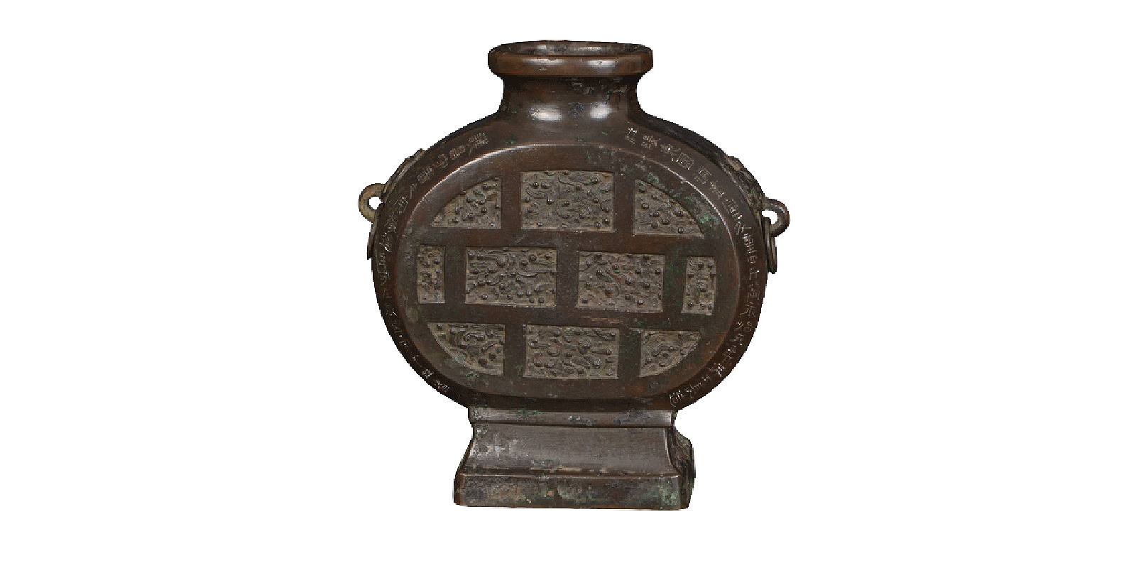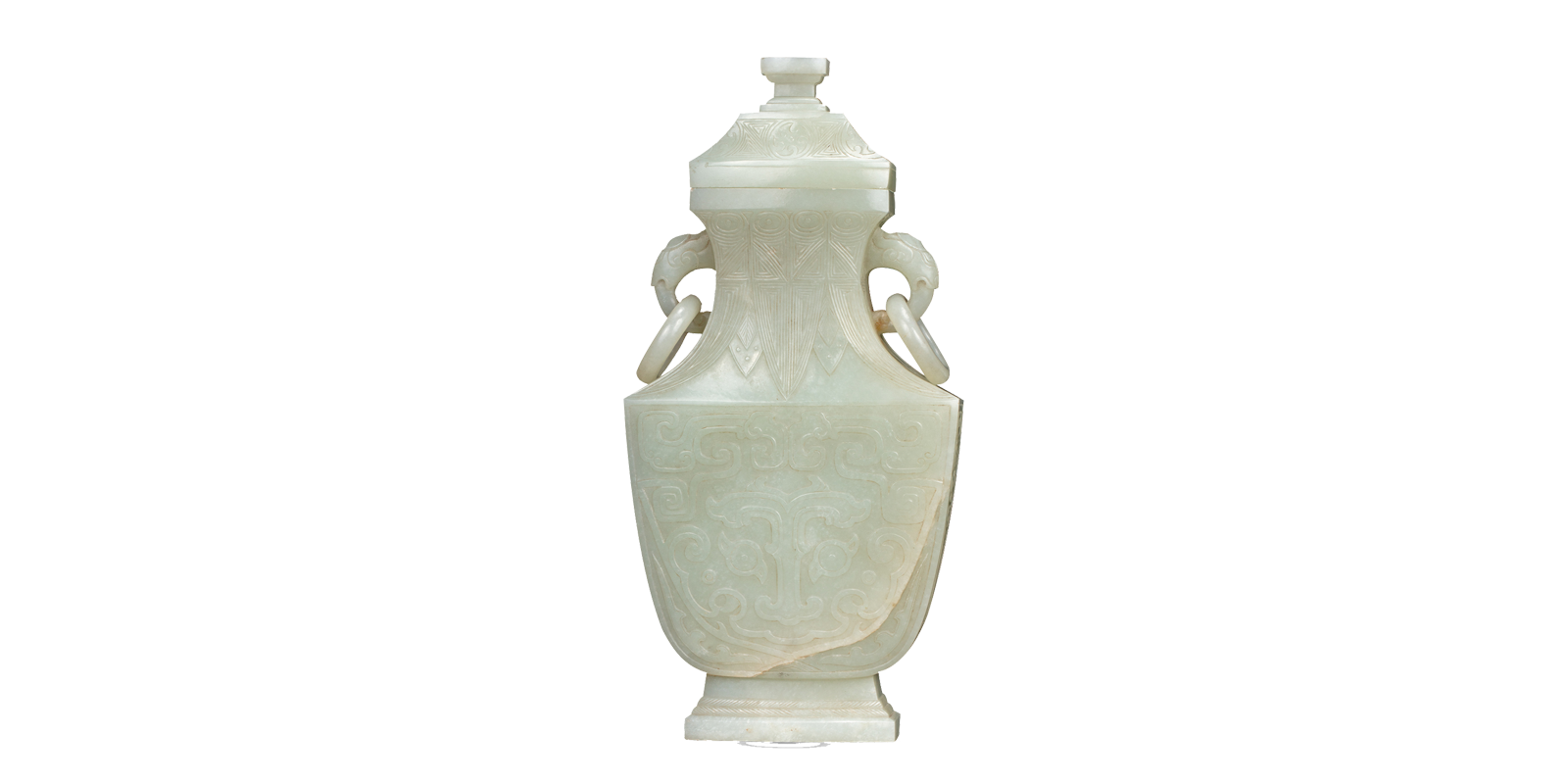青玉兽耳活环带盖扁瓶