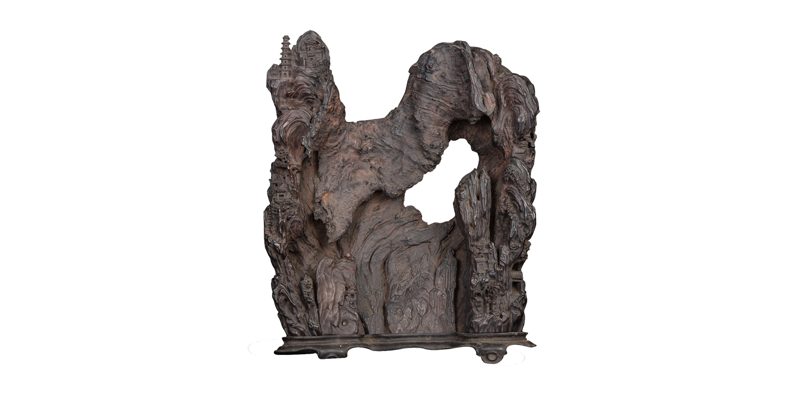 木根雕山水楼阁图山子