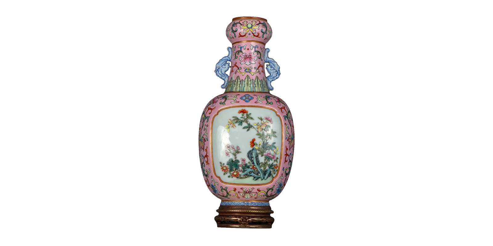 乾隆款粉彩开光花卉纹壁瓶