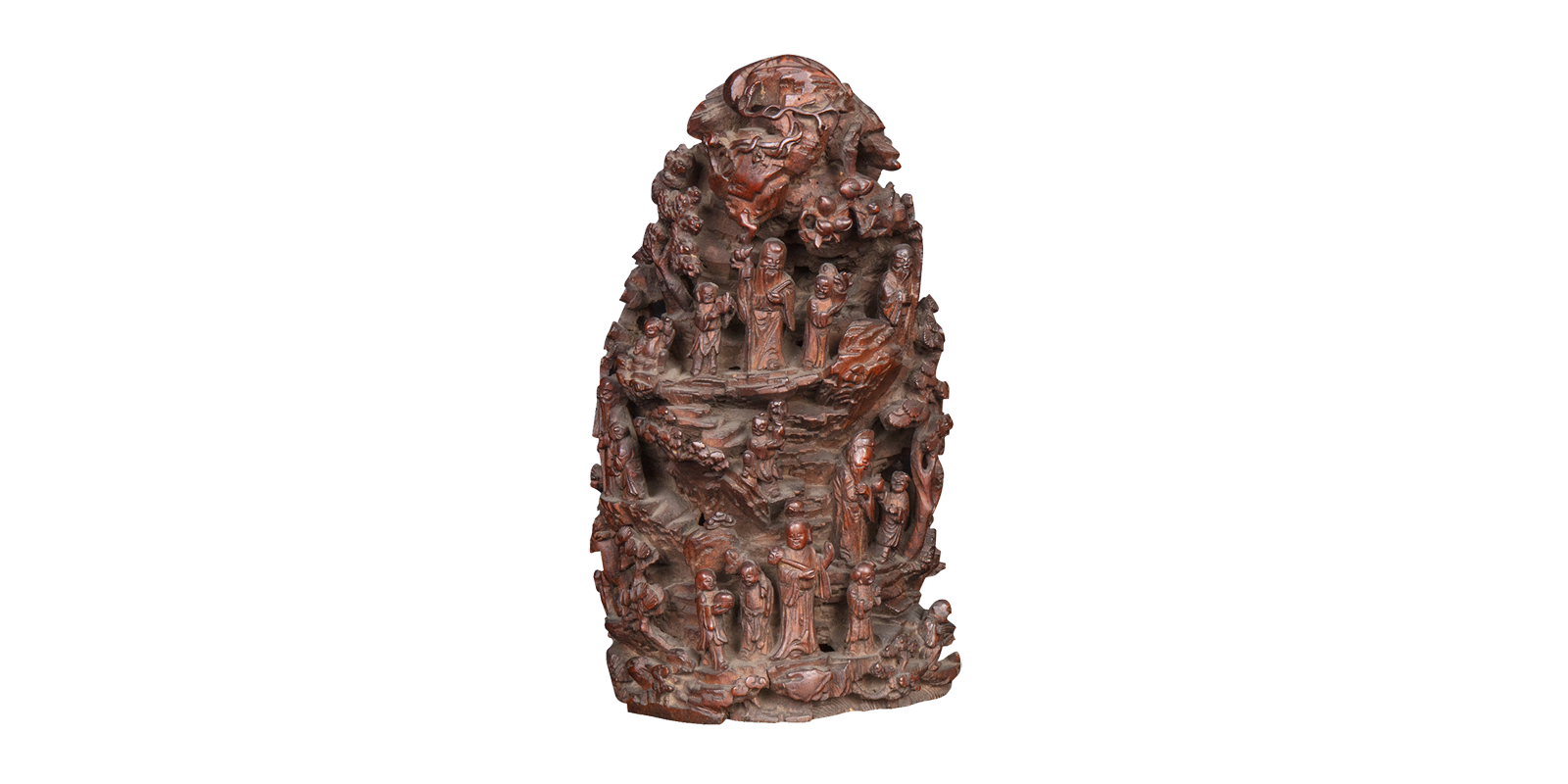 竹根雕八仙图山子